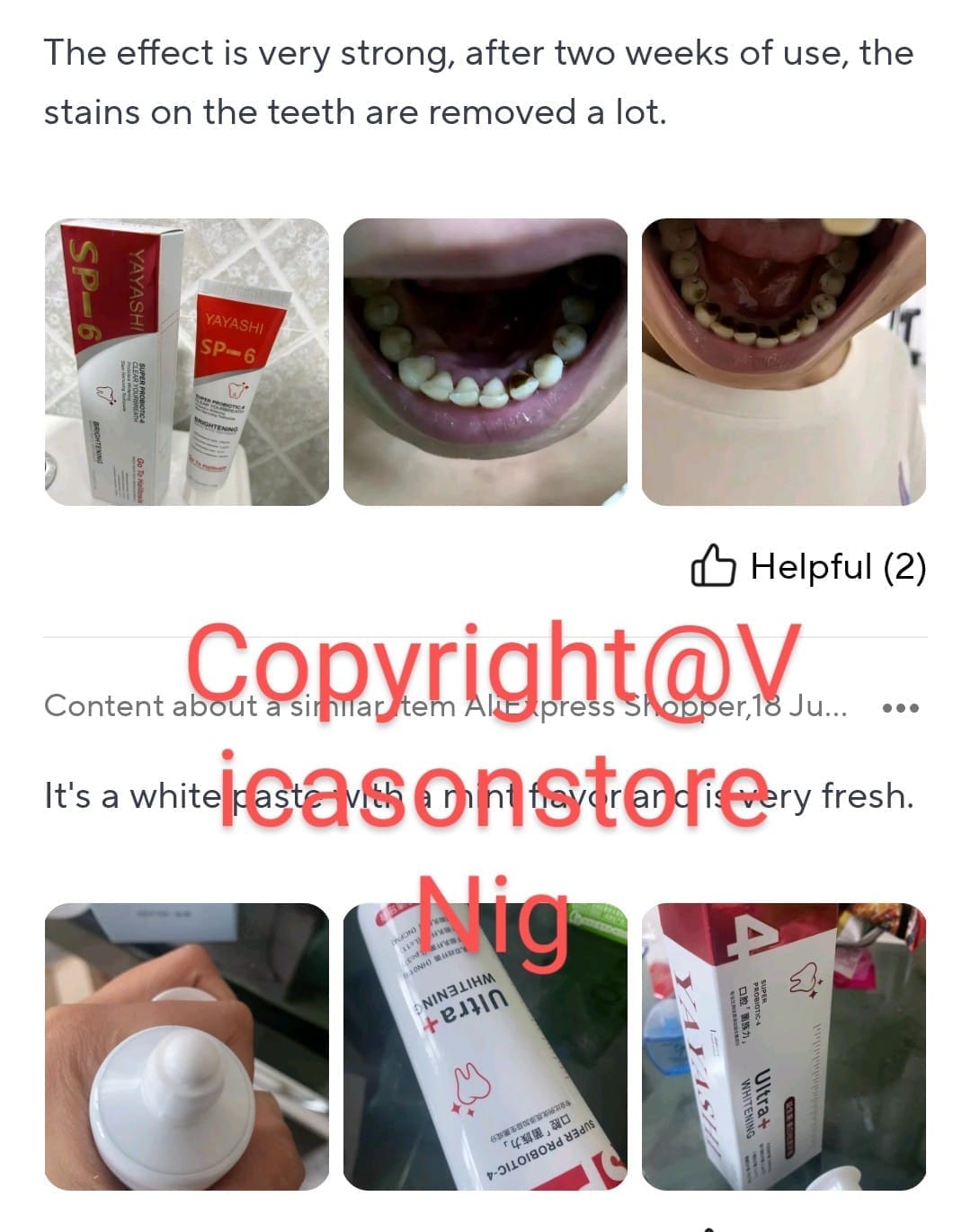 For more than 2 years, i have been looking for a product that will help me get white teeth and also make them strong. 4 months ago was when i came across these products. And ever since i have been using them, all my teeth are now very clean and white. I advise you to get these products